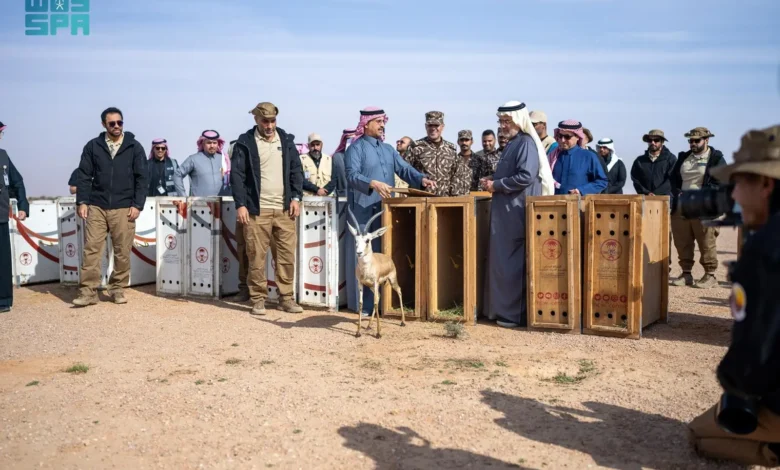 وشمل الإطلاق 50 من ظباء الريم، و25 من المها الوضيحي، ويأتي ذلك ضمن برامج إكثار وإعادة توطين الكائنات الفطرية المهددة بالانقراض في موائلها الطبيعية، بما يدعم استدامة النظم البيئية ويعزز التنوع الأحيائي.