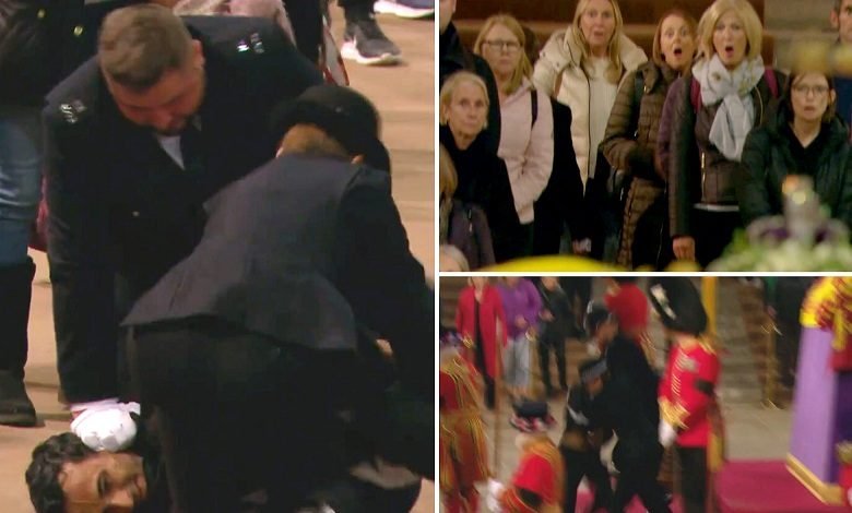 ألقت الشرطة البريطانية القبض على رجل لمحاولته الاقتراب من نعش الراحلة الملكة إليزابيث الثانية، في حادث أصاب المعزين بالذهول.