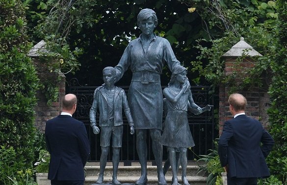 ونزع وليام وهاري تحت أنظار شقيق ديانا وشقيقتيها القماش الذي كان يغطي النصب التذكاري المقام بالقرب من القصر حيث عاشت الأميرة حيث يعيش وليام الآن. ويمثل التمثال البرونزي الأميرة ذات الشعر القصير، يحيط بها ثلاثة أطفال، وتضع يديها على أكتاف اثنين منهم.