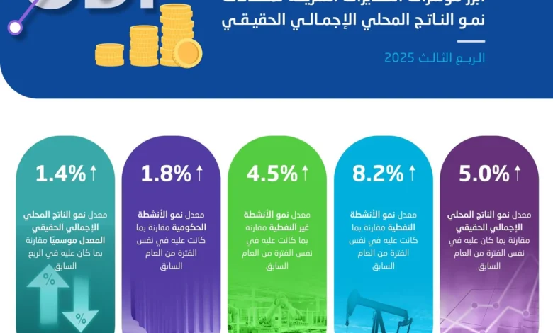 الإحصاء : نمو الناتج المحلي الإجمالي الحقيقي 5% في الربع الثالث 2025