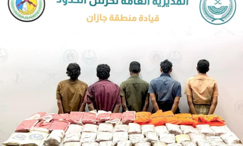 في إطار تنفيذ مهام وزارة الداخلية في مكافحة المخدرات وجهودها في متابعة نشاطات تهريبها وترويجها التي تستهدف أمن المملكة وشبابها، أحبطت المديرية العامة لحرس الحدود محاولات تهريب (2,756,806) أقراص من مادة الإمفيتامين المخدر و(1,944,230) قرصًا خاضعًا لتنظيم التداول الطبي و(4) أطنان من مادة الحشيش المخدر و(180) طنًا من نبات القات المخدر، وقبضت على مهربيها بمناطق تبوك وجازان وعسير ونجران ومكة المكرمة والمدينة المنورة والمنطقة الشرقية، وهم (1518) مخالفًا لنظام أمن الحدود من الجنسية الإثيوبية و(842) مخالفًا لنظام أمن الحدود من الجنسية اليمنية و(7) مخالفين لنظام أمن الحدود من الجنسية السودانية و(6) مخالفين لنظام أمن الحدود من الجنسية الإرترية و(3) مخالفين لنظام أمن الحدود من الجنسية الصومالية ومخالفان لنظام أمن الحدود من الجنسية الباكستانية و(33) مواطنًا.