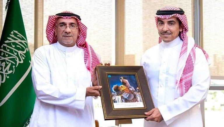 وقال الوزير بتغريدة، عبر تويتر، سعدت باستقبال وتكريم زميلي المبدع نزار معتوق حسنين، من وكالة الأنباء السعودية (واس)، على الصورة التي التقطها لمجندة سعودية تحتضن رضيعًا.