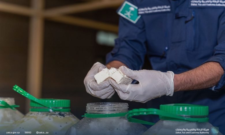وأوضحت الهيئة أنه أثناء إجراء عملية الكشف والمعاينة لإحدى المركبات القادمة من نوع “خصوصي”، عُثر على 29,000 حبة كبتاجون، كانت مُخبأة بطريقة فنية، وذلك بإخفاء الحبوب في قفازات بلاستيكية ووضعها داخل عُلب زجاجية تحتوي على أجبان، ومن ثم وضعها ضمن الأمتعة التي يحملها المُهرب في المركبة.