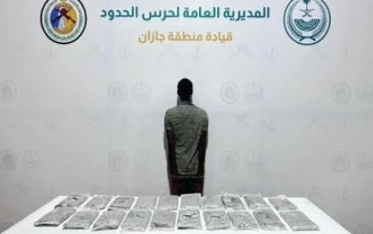 قبضت الدوريات البرية لحرس الحدود في قطاع العارضة بمنطقة جازان على مخالف لنظام أمن الحدود من الجنسية الإثيوبية، لتهريبه (20.7) كيلوغرام من مادة الحشيش المخدر، وجرى استكمال الإجراءات النظامية الأولية بحقه، وتسليمه والمضبوطات لجهة الاختصاص.