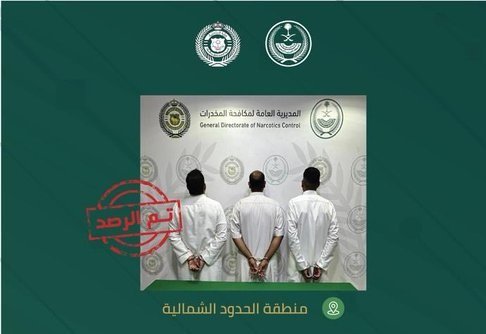 قبضت المديرية العامة لمكافحة المخدرات على (3) مواطنين بمنطقة الحدود الشمالية لترويجهم مادة الإمفيتامين المخدر، وجرى إيقافهم واتخاذ الإجراءات النظامية بحقهم، وإحالتهم إلى النيابة العامة.