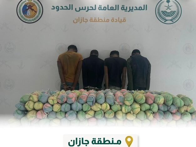 قبضت الدوريات البرية لحرس الحدود في قطاع الدائر بمنطقة جازان على (4) مخالفين لنظام أمن الحدود من الجنسية الإثيوبية، لتهريبهم (144) كيلوجرامًا من نبات القات، وجرى استكمال الإجراءات النظامية الأولية بحقهم ، وتسليمهم والمضبوطات لجهة الاختصاص.