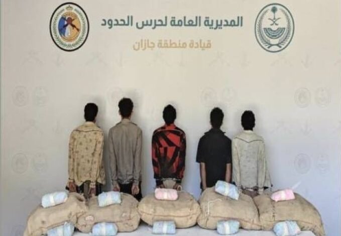 قبض حرس الحدود بمنطقة جازان على (5) مخالفين لنظام أمن الحدود، لتهريبهم (75) كيلوجرامًا من نبات القات المخدر.