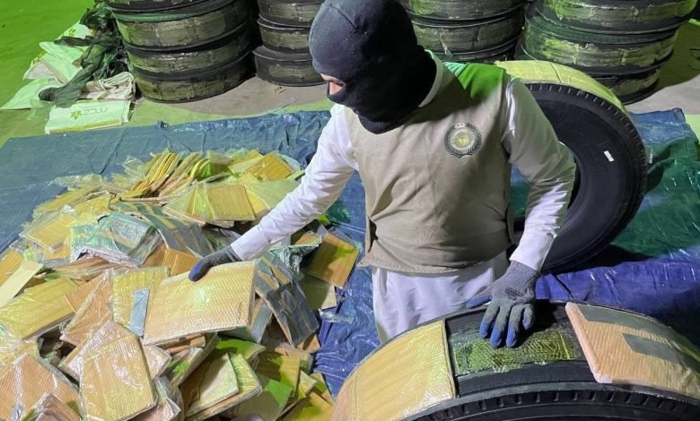 صرح المتحدث الرسمي للمديرية العامة لمكافحة المخدرات النقيب محمد النجيدي، بأن المتابعة الأمنية الاستباقية لنشاطات الشبكات الإجرامية، التي تمتهن تهريب المواد المخدرة إلى المملكة، أسفرت – بتوفيق الله – عن كشف مخطط لتهريب كمية كبيرة من أقراص الإمفيتامين المخدرة إلى المملكة، حيث تمت متابعتها وضبطها، بالتنسيق مع الهيئة العامة للجمارك، بميناء جدة الإسلامي، مخفية داخل شحنة إطارات، وبلغ إجماليها (10,948,000) قرص إمفيتامين.