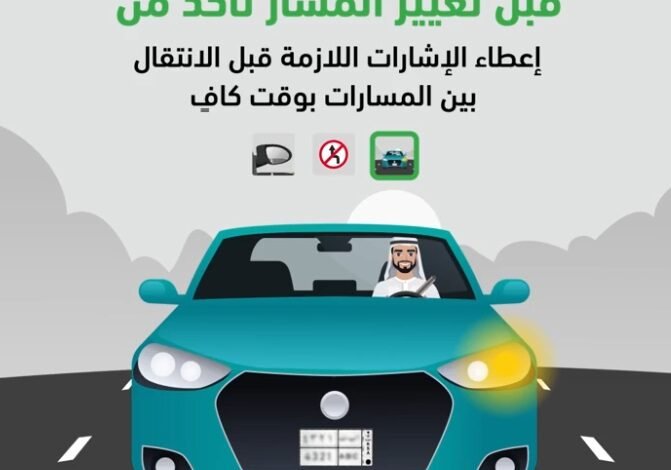 كما شددت الإدارة على أهمية إعطاء الإشارات اللازمة قبل الانتقال بين المسارات بوقت كاف، والتأكد كذلك من عدم وجود إشارات تمنع الانتقال للمسار المطلوب الانتقال له، وخلوه من المركبات.