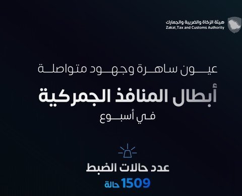 سجلت المنافذ الجمركية البرية والبحرية والجوية 1509 حالات ضبط للممنوعات، وذلك في إطار الجهود المستمرة التي تبذلها هيئة الزكاة والضريبة والجمارك “زاتكا” لتعزيز الجانب الأمني وحماية المجتمع من الممنوعات بمختلف أنواعها وأشكالها.