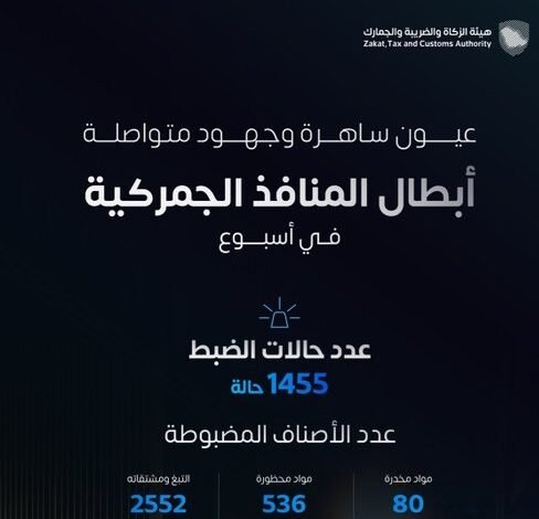 المنافذ الجمركية تُسجِّل 1455 حالة ضبط خلال أسبوع