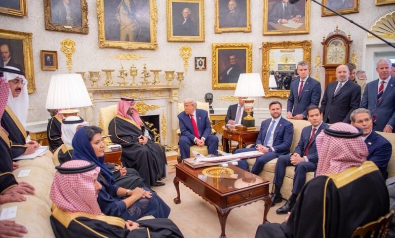 ونوّه سمو ولي العهد بما حققته زيارة فخامة رئيس الولايات المتحدة الأمريكية إلى المملكة العربية السعودية في شهر مايو 2025م، من نتائج إيجابية أسهمت في الارتقاء بالعلاقة الإستراتيجية بين البلدين الصديقين إلى مستوى تاريخي غير مسبوق بفضل قيادة خادم الحرمين الشريفين -حفظه الله-، وقيادة فخامته.