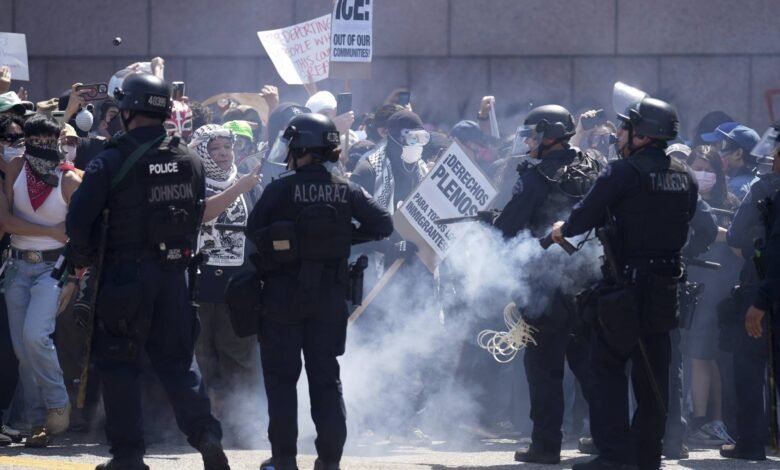 وكان مسؤول كبير في إدارة ترمب قال لـ«وكالة الصحافة الفرنسية» إنّه «في ضوء تزايد التهديدات ضدّ مسؤولين فيدراليين ومبان فيدرالية، فإنّ 700 عنصر من مشاة البحرية العاملين في كامب بندلتون»، القاعدة العسكرية الواقعة على بُعد ساعتين جنوب المدينة، «سيتمّ نشرهم في لوس أنجليس للمساعدة في حماية المسؤولين الفيدراليين والمباني الفيدرالية».