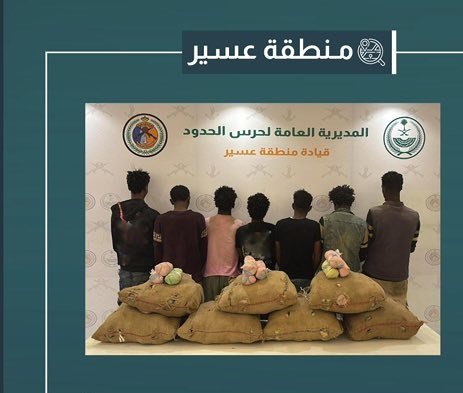 قبضت الدوريات البرية لحرس الحدود في قطاع الربوعة بمنطقة عسير على (7) مخالفين لنظام أمن الحدود من الجنسية الإثيوبية، لتهريبهم (105) كيلوجرامات من نبات القات المخدر، واستُكملت الإجراءات النظامية الأولية بحقهم، وسلموا والمضبوطات لجهة الاختصاص.