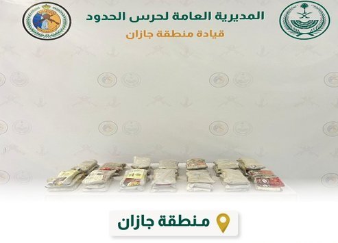 وأحبطت الدوريات البرية لحرس الحدود في قطاع الدائر بمنطقة جازان تهريب (40) كيلوجرامًا من مادة الحشيش المخدر، وجرى استكمال الإجراءات النظامية الأولية، وتسليم المضبوطات لجهة الاختصاص.