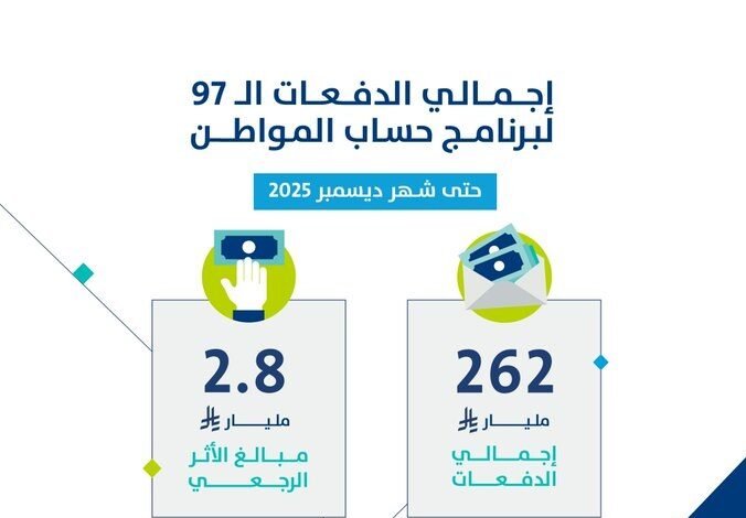 حساب المواطن : 262 مليار ريال إجمالي مبلغ الدفعات منذ انطلاقة البرنامج حتى الدفعة الـ97
