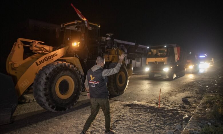 ودخلت مُعدات وآليات مصرية من معبر رفح مباشرة إلى داخل غزة، الليلة الماضية؛ للبحث عن جثث الرهائن.