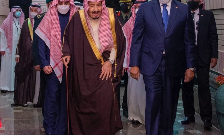 ورحب خادم الحرمين الشريفين – أيده الله – برئيس المجلس السيادي الانتقالي السوداني ومرافقيه في المملكة، فيما أبدى فخامته سعادته بزيارة المملكة، ولقائه خادم الحرمين الشريفين، مهنئاً الملك المفدى – حفظه الله – بنجاح الفحوصات الطبية.