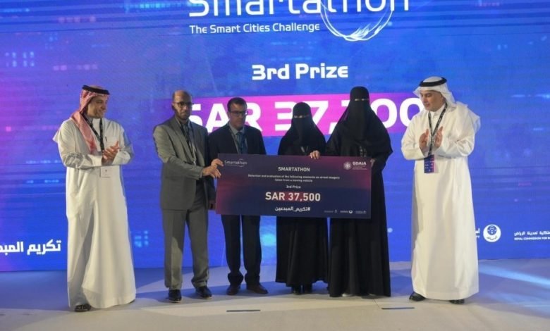 وجرى خلال الحفل تكريم الفائزين في “تحدي سمارتاثون”، وفاز في المسار الأول ثلاثة مشروعات، الأول : فريق “بصير” من المملكة، والثاني “Regressor” من الهند، والثالث ” AICAS_KSU” من المملكة، وبالمسار الثاني: الأول ” Apex Coders” من الهند، والثاني “Daqian” من الصين، والثالث “akatsuki” من الهند.