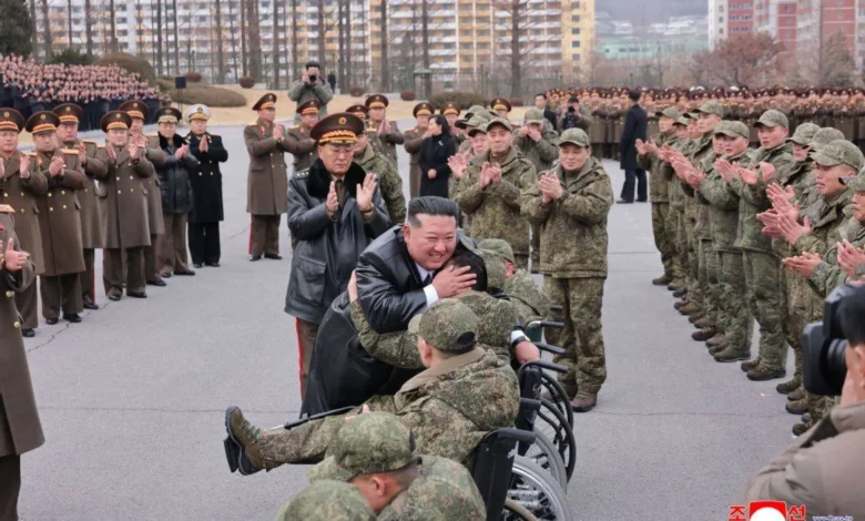 وأظهرت لقطات مصورة نشرتها كوريا الشمالية، جنوداً بالزي العسكري يترجلون من طائرة، وكيم يعانق جندياً على كرسي متحرك وسط تجمع لجنود ومسؤولين للترحيب بالقوات.