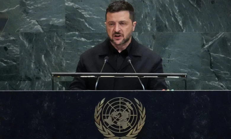 وقال زيلينسكي، في كلمته أمام الجمعية العامة للأمم المتحدة: «نعيش الآن في خضمّ أكثر سباقات التسلح تدميراً في التاريخ، وأوكرانيا ليست سوى البداية، وها هي الطائرات المسيَّرة الروسية باتت تحلق بالفعل في أجواء أوروبا، والعمليات الروسية تمتد بالفعل عبر عدة دول، فيما يسعى بوتين إلى مواصلة هذه الحرب عبر توسيع نطاقها».