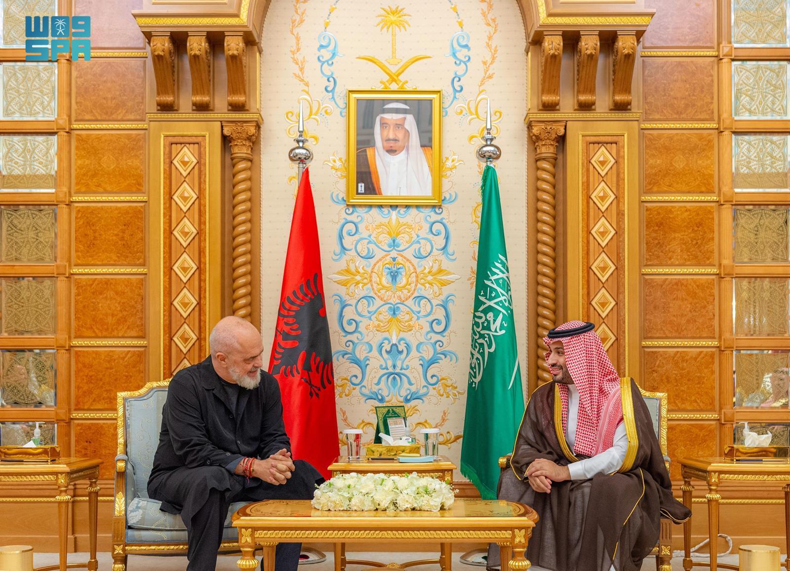 كما التقى صاحب السمو الملكي الأمير محمد بن سلمان بن عبدالعزيز آل سعود ولي العهد رئيس مجلس الوزراء، اليوم، دولة السيد إيدي راما رئيس وزراء جمهورية ألبانيا والوفد المرافق له، وذلك على هامش انعقاد النسخة التاسعة من مؤتمر مبادرة مستقبل الاستثمار، في مركز الملك عبدالعزيز الدولي للمؤتمرات بالرياض.
