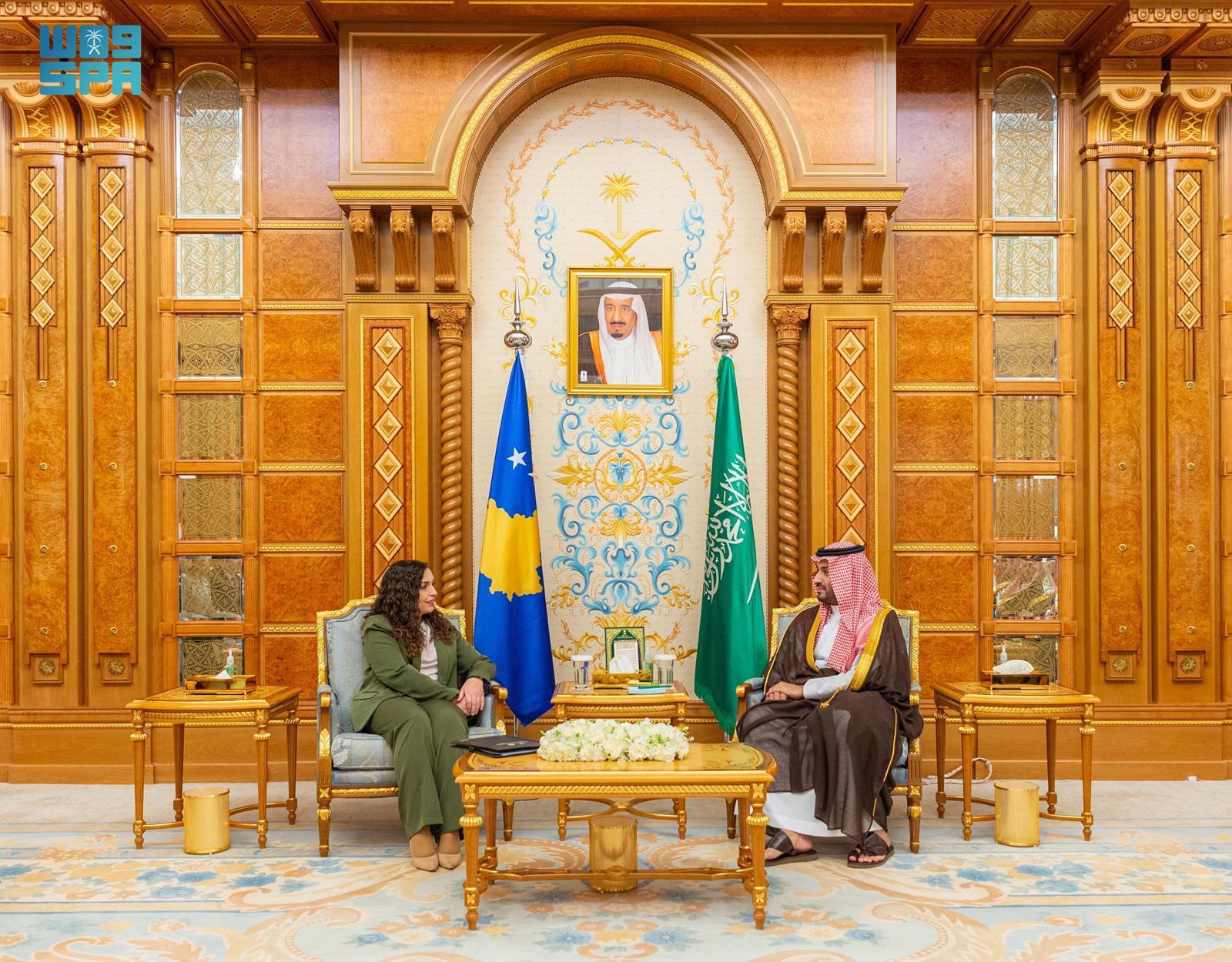 والتقى صاحب السمو الملكي الأمير محمد بن سلمان بن عبدالعزيز آل سعود ولي العهد رئيس مجلس الوزراء، اليوم، فخامة السيدة فيوسا عثماني سادريو رئيسة جمهورية كوسوفا والوفد المرافق لها، وذلك على هامش انعقاد النسخة التاسعة من مؤتمر مبادرة مستقبل الاستثمار، في مركز الملك عبدالعزيز الدولي للمؤتمرات بالرياض.