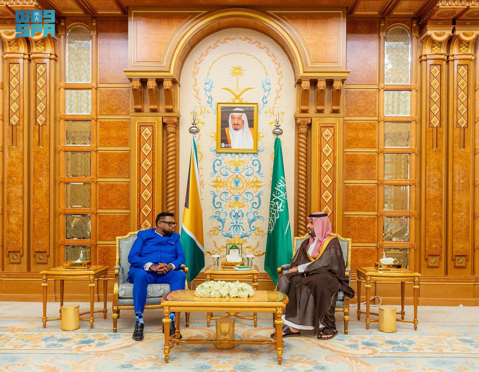 والتقى صاحب السمو الملكي الأمير محمد بن سلمان بن عبدالعزيز آل سعود ولي العهد رئيس مجلس الوزراء، اليوم، فخامة الرئيس محمد عرفان علي رئيس جمهورية غويانا التعاونية والوفد المرافق له، وذلك على هامش انعقاد النسخة التاسعة من مؤتمر مبادرة مستقبل الاستثمار، في مركز الملك عبدالعزيز الدولي للمؤتمرات بالرياض.