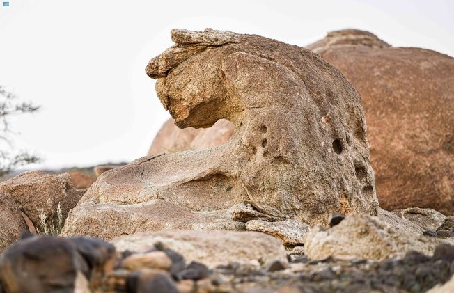 صخرة على هيئة “نمر عربي” تتوسد حرة القفيف بمحافظة الجموم شمال مكة