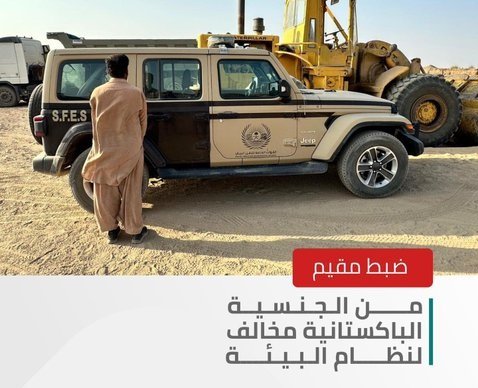 ضبطت القوات الخاصة للأمن البيئي مقيمًا مخالفًا لنظام البيئة من الجنسية الباكستانية، لاستغلاله الرواسب في منطقة المدينة المنورة، وطُبقت الإجراءات النظامية بحقه.