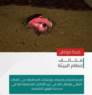 ضبط مواطنًا مخالفًا لنظام البيئة لإشعاله النار في غير الأماكن المخصصة لها في محمية طويق الطبيعية