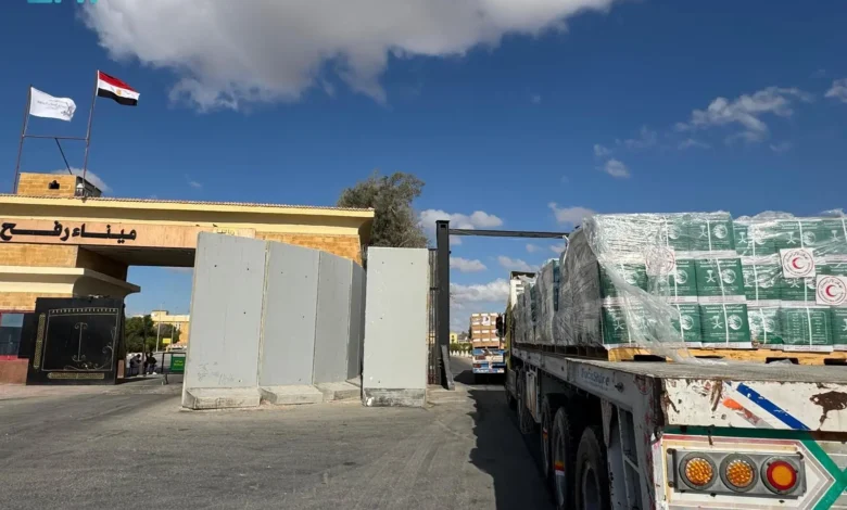 مساعدات إغاثية سعودية جديدة تعبر منفذ رفح متجهة إلى قطاع غزة مقدمة من مركز الملك سلمان للإغاثة