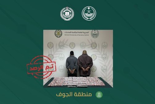 قبضت المديرية العامة لمكافحة المخدرات على مواطنين بمنطقة الجوف لترويجهما مادة الحشيش المخدر و(721.2) قرصًا خاضعًا لتنظيم التداول الطبي، وأوقفا واتُخذت الإجراءات النظامية بحقهما، وأحيلا إلى النيابة العامة.
