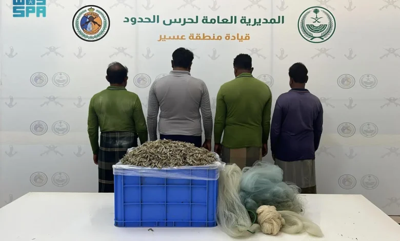 ضبطت الدوريات الساحلية لحرس الحدود في القحمة بمنطقة عسير (4) مقيمين من الجنسية البنجلاديشية مخالفين للائحة الأمن والسلامة لمزاولي الأنشطة البحرية في المناطق البحرية للمملكة العربية السعودية، وذلك لممارستهم الصيد دون تصريح، وبحوزتهم أسماك مصيدة، واُتُّخِذَت الإجراءات النظامية بحقهم بالتنسيق مع الجهات المختصة.