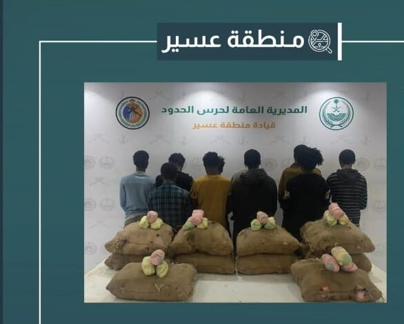 حرس الحدود بـ عسير يقبض على 10 إثيوبيين لتهريبهم 180 كيلوجرامًا من القات