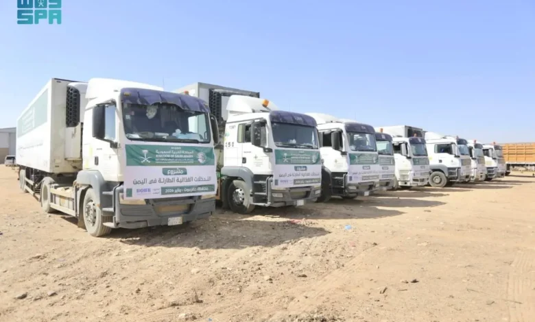 20 شاحنة إغاثية مقدمة من مركز الملك سلمان للإغاثة تصل إلى مديرية العبر بمحافظة حضرموت