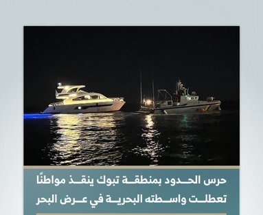 حرس الحدود بمنطقة تبوك ينقذ مواطنًا تعطلت واسطته البحرية في عرض البحر