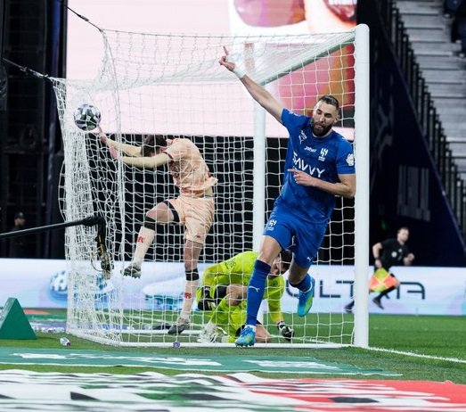 وافتتح متعب الحربي التسجيل مبكرا للهلال في الدقيقة السابعة، وبعد دقيقة واحدة أضاف الفرنسي كريم بنزيمة الهدف الثاني، ثم سجل هدفا ثالثا للهلال بالدقيقة 31، وأضاف النجم الفرنسي هدفه الثالث “هاتريك”، والرابع للهلال في الوقت بدل الضائع للشوط الأول.