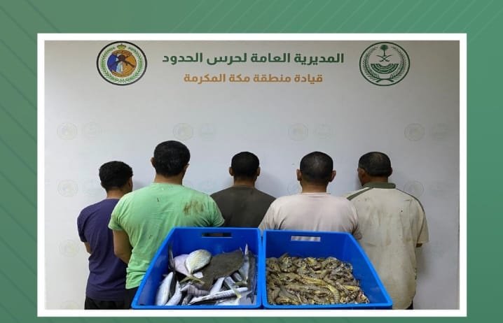ضبطت الدوريات الساحلية لحرس الحدود في محافظة القنفذة بمنطقة مكة المكرمة (5) مقيمين من الجنسية المصرية مخالفين للائحة الأمن والسلامة لمزاولي الأنشطة البحرية في المناطق البحرية للمملكة؛ وذلك لممارستهم الصيد دون تصريح، وبحوزتهم أسماك مصيدة، وتم اتخاذ الإجراءات النظامية بحقهم بالتنسيق مع الجهات المختصة.