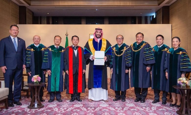 سمو ولي العهد يتسلم شهادة الدكتوراه الفخرية من جامعة كاسيتسارت التايلندية في مجال معرفة الأرض من أجل التنمية المستدامة