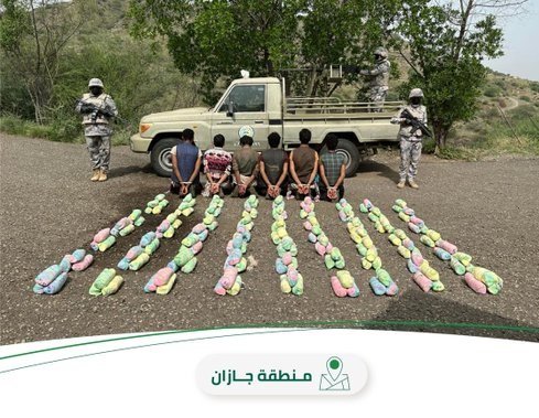 حرس الحدود بـ جازان يقبض على 6 مخالفين لنظام أمن الحدود لتهريبهم نبات القات المخدر