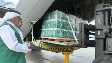 وصول الطائرة الإغاثية السعودية الـ 64 لإغاثة الشعب الفلسطيني في قطاع غزة تحمل على متنها سلالًا غذائية