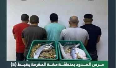 ضبطت الدوريات الساحلية لحرس الحدود في محافظة القنفذة بمنطقة مكة المكرمة (5) مقيمين من الجنسية المصرية مخالفين للائحة الأمن والسلامة…